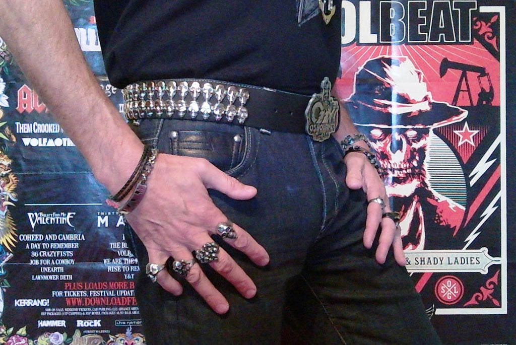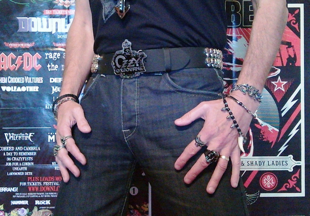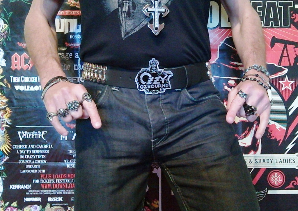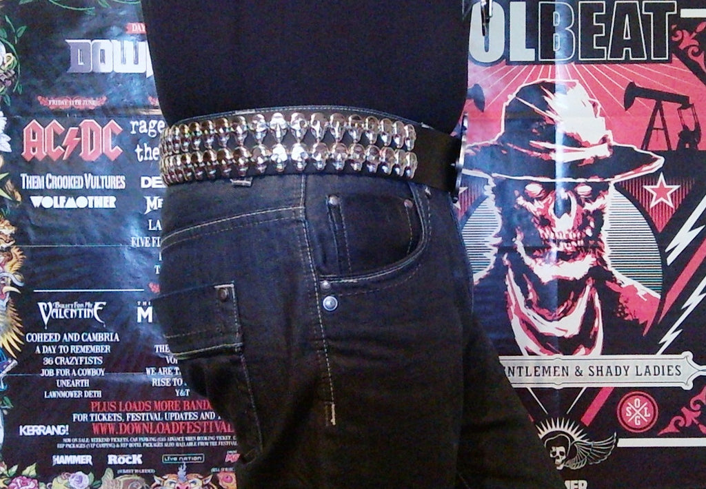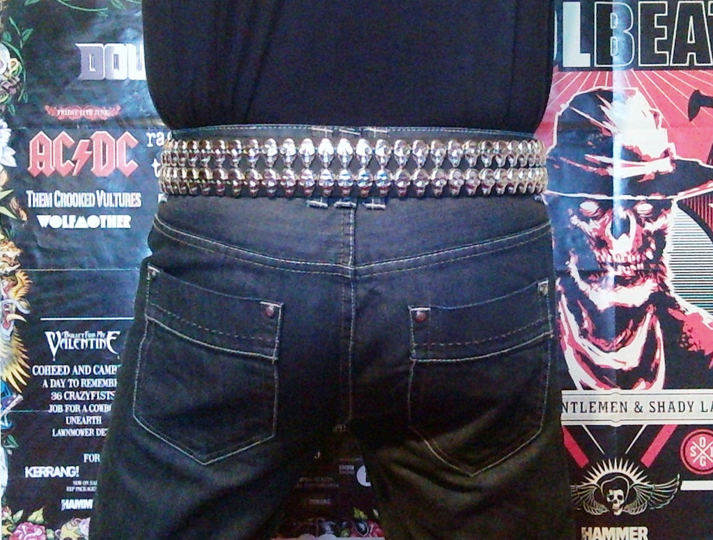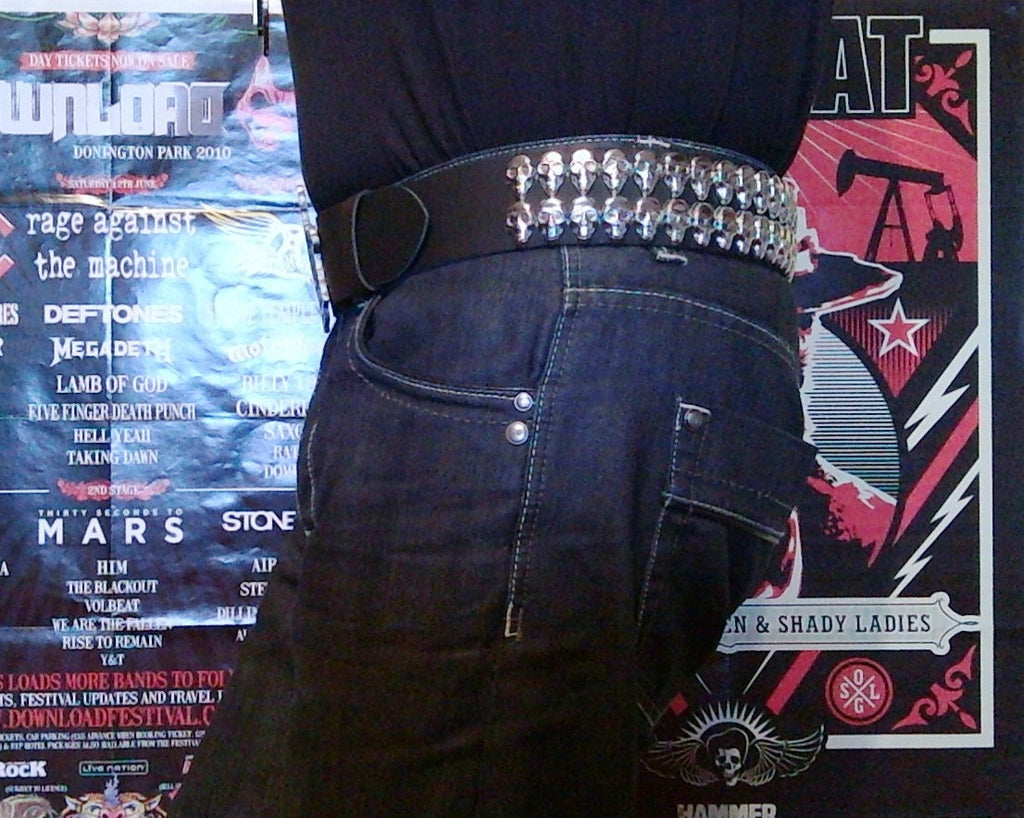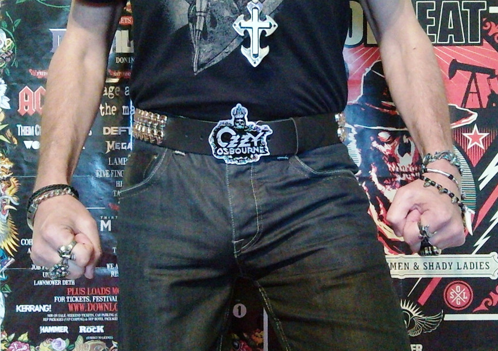 "Foreboding and with a real sense of Doom!" is a great way to describe our Black Rain belt. Fashioned from gleaming silversteel, the buckle depicts the classic Black Rain album logo with its infamous dead eyed skull and decaying crown. Stunning on its own, but when paired with our 50cm wide black leather belt, covered with over 80 sneering silver skulls in 2 solid rows, you get a true metal masterpiece, worthy of the Prince of Darkness himself.