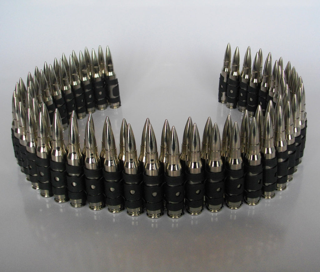 Our Genuine Bullet Belts are made from inert 7.62mm rounds as used in the GPMG & M60 Machine Guns by NATO Forces.