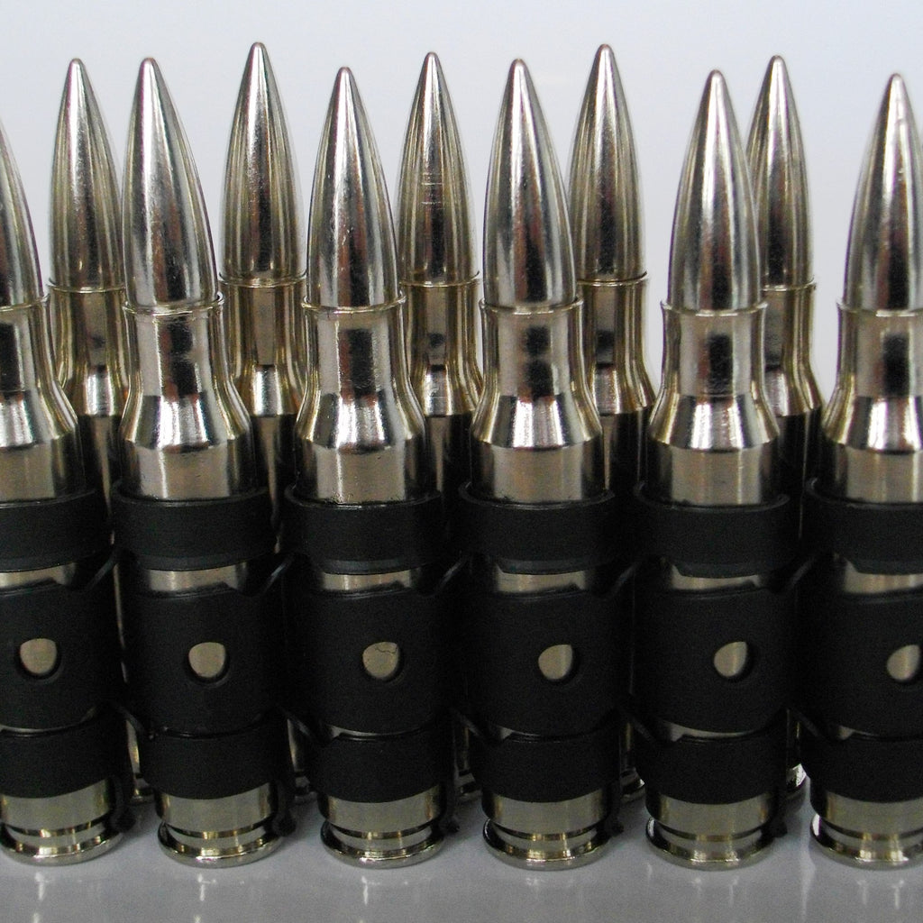 Individual inert 7.62 Nickel Tipped Nickel Bullets with Black Links can also be purchased for £2.99 each plus postage & packing.