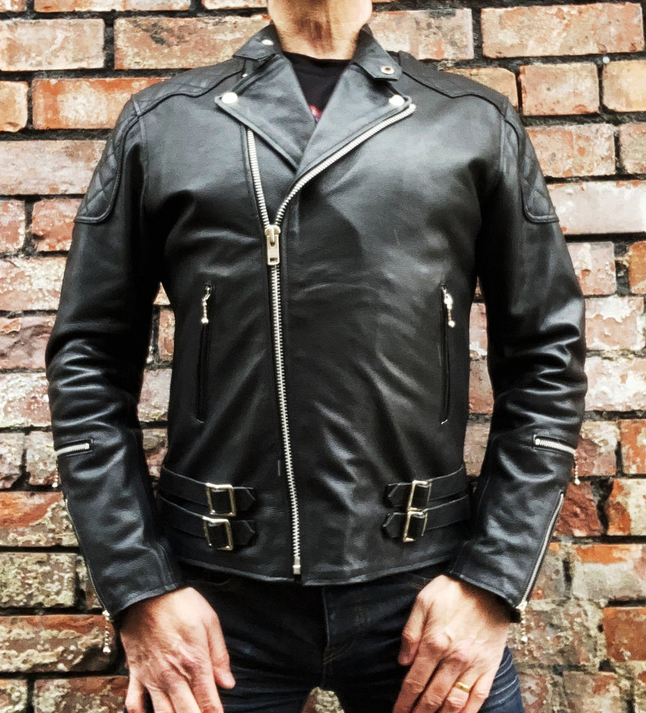 The original British 'Motorcycle' design, without a belt, but with padding on the shoulders and elbows, enshrined into the NWOBHM ranks by the mighty Iron Maiden, Saxon and Diamond Head.