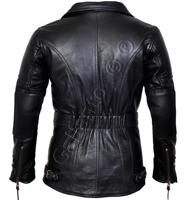In true metal god style, the coat features padding on the shoulders and elbows, a selection of pockets inside and out, heavy duty YKK rustic nickel zips with black leather pulls, ribbed waist belt, buckled side adjusters, zipped cuffs and a quilted, satin effect black polyester lining.