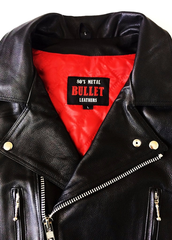 Our 80's Metal Black Diamond 'Bullet' Leather Jacket is made from jet black, premium high-grain leather and is styled to this classic NWOBHM design, so fits, feels and looks exactly how you want it to. The leather is tough and extremely hard-wearing, yet beautifully soft and supple to the touch, making it ideal for everyday use.