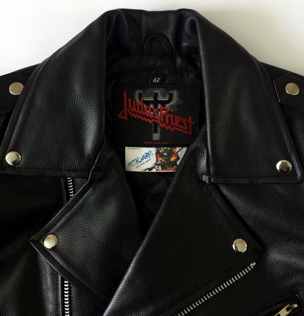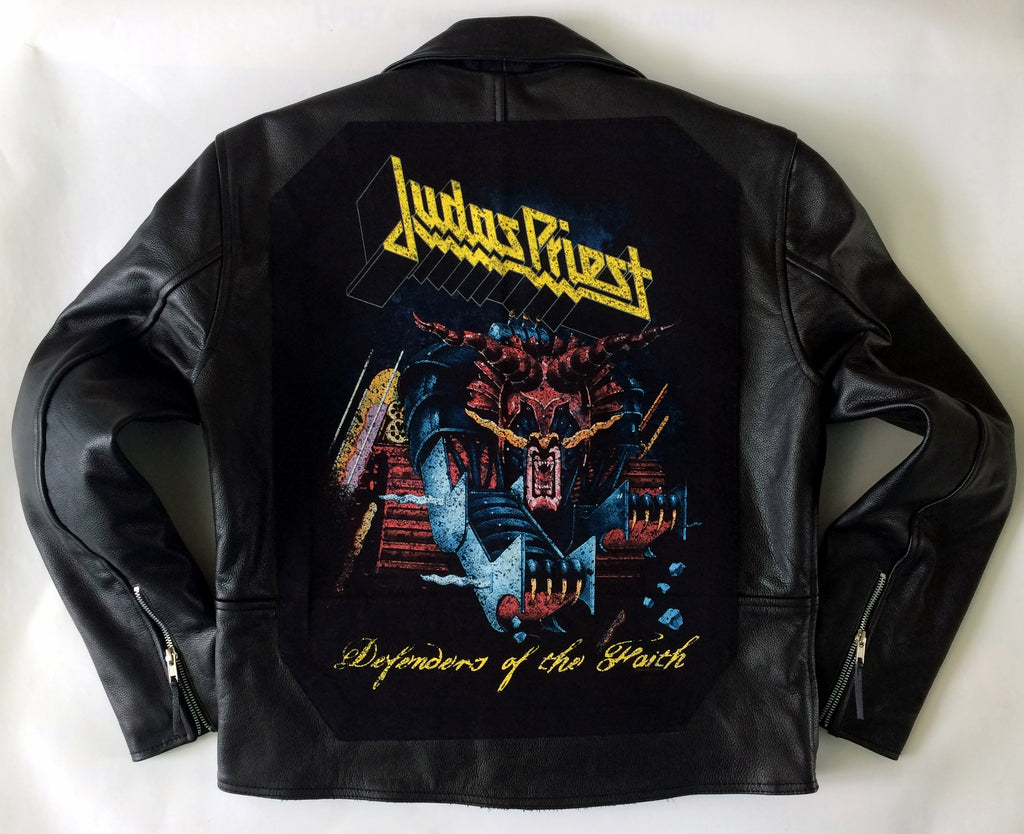 Created by our very own Metalworks team to be a leather jacket like no other, our stunning Judas Priest 'Defenders of the Faith' heavy metal leather jacket is made from biker quality, 1.2mm thick cowhide leather, that is extremely hardwearing, yet very comfortable and practical for everyday wear. Available in two styles, it features the classic epaulets on the shoulders, a selection of pockets inside and out, high quality YKK zips and a quilted, black satin effect lining. The heavy duty front zip has a classic Judas Priest 'Devils Cross' logo tag, whilst the back of this jacket is emblazoned with a stunning, Judas Priest 'Defenders of the Faith' design, making this jacket totally unique and guaranteed to dominate the ranks of every metal army.