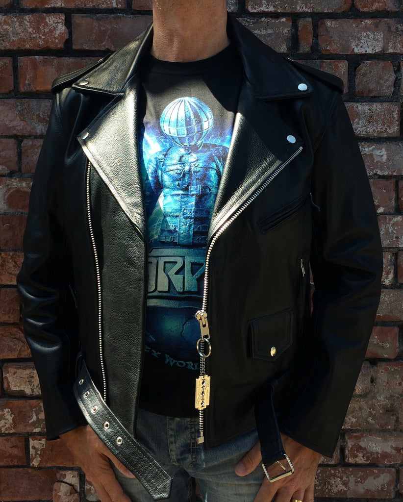 Created by our very own Metalworks team to be a leather jacket like no other, our stunning Judas Priest 'Sad Wings Of Destiny' heavy metal leather jacket is made from biker quality 1.2mm thick cowhide leather, that is extremely hardwearing, yet very comfortable and practical for everyday wear. Available it two styles, it has the classic epaulets on the shoulders, a selection of pockets inside and out, high quality YKK zips and a quilted, black satin effect lining. The heavy duty front zip has an official Judas Priest 'British Steel' razor blade tag, whilst the back of this jacket is emblazoned with a stunning, fully authorised Judas Priest 'Sad Wings Of Destiny' design, making this jacket totally unique and guaranteed to dominate the ranks of every metal army.
